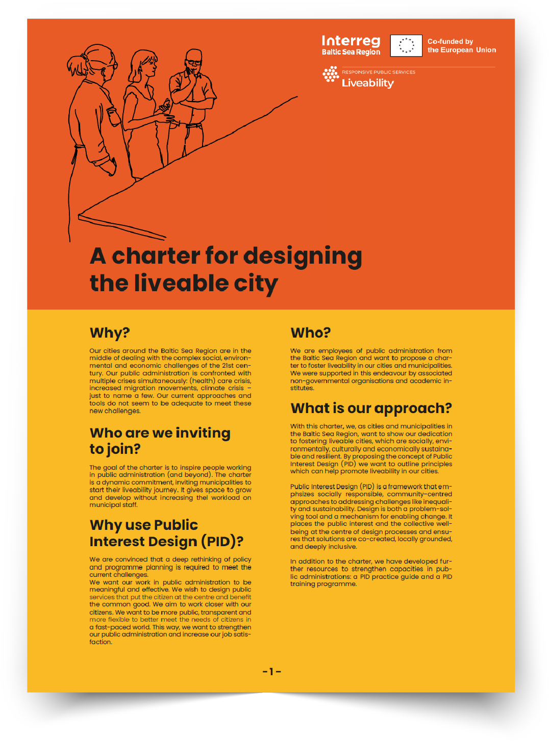 Rooted in Public Interest Design (PID) and guided by the Liveability DesignApproach (LDA)., the Charter combines design principles such as curiosity and empathy with democratic values like trust, transparency, and collaboration.